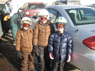 littles back to the car and London and I went up the lift. By the time we got back down it was about 4:30. Once we got to the car and were ready to go, everyone was leaving. We were parked at the upper lot of Alta we didn't get out of the lot for over 1 hour. We started a movie in the car and it was over by the time we got to Snowbird. It took over 3 hours to get home!! Luckily Tee was prepared with snacks and drinks for the kids and they had the movie to entertain them. It was a holiday so we should have know better. It was a really fun way to start the year!!